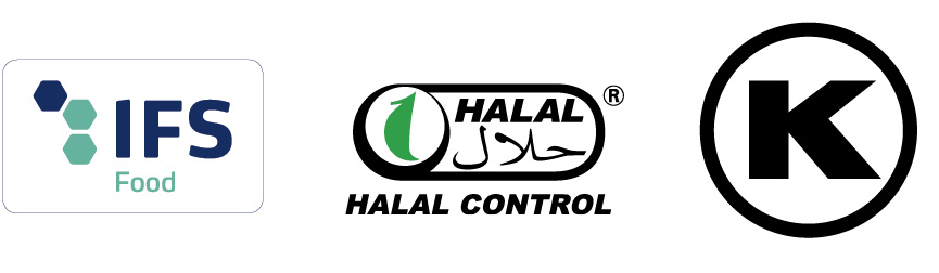 Das Unternehmen Maxfry ist seit 2008 nach „International Food Standard“ auf höherem Niveau zertifiziert. Zudem sind alle unsere Produkte ausnahmslos als koscher und Halal-konform eingestuft.